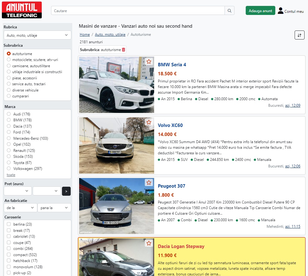 Găsește ușor cele mai noi anunțuri pentru mașini de vânzare ieftine din București și din provincie!